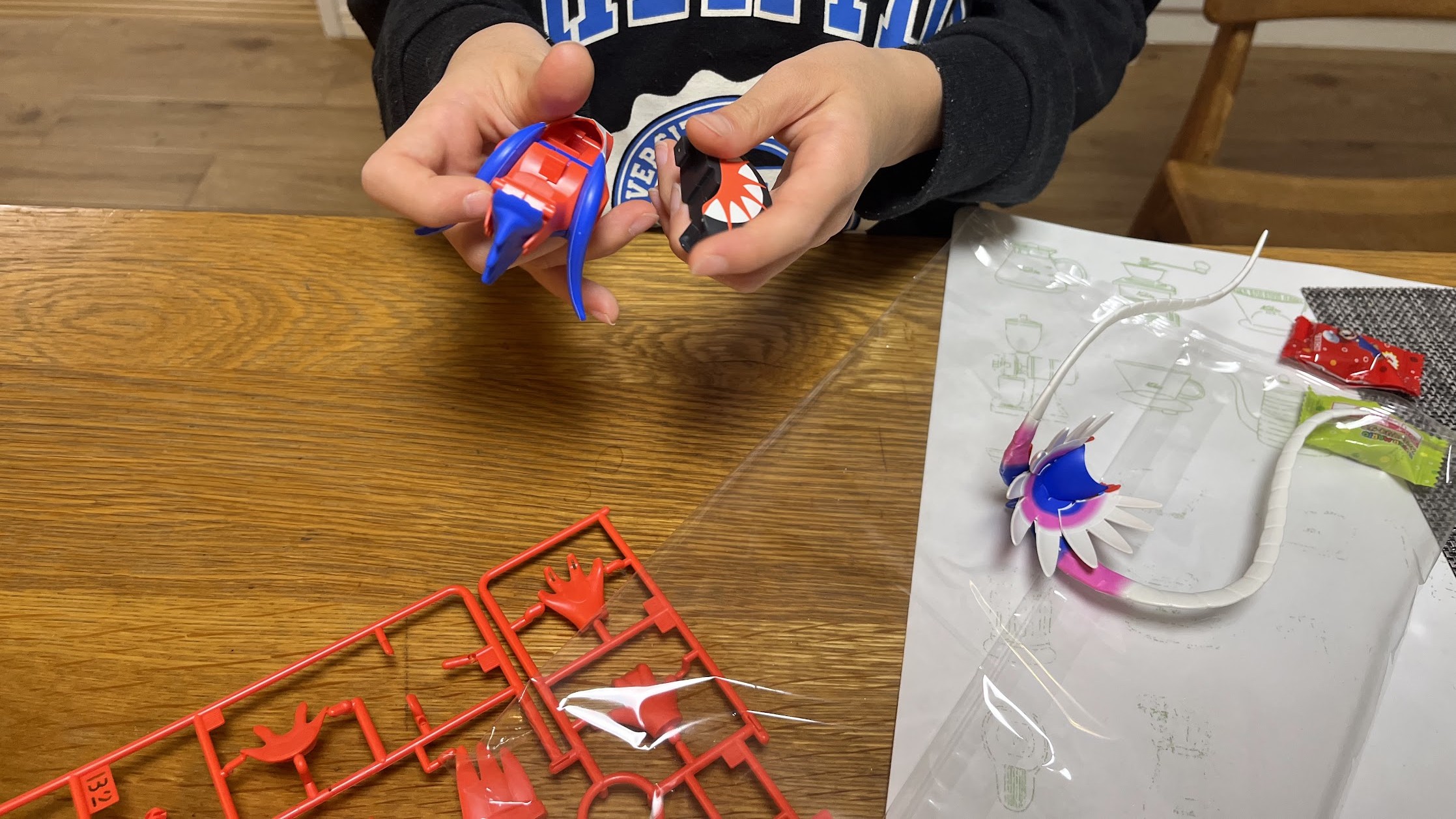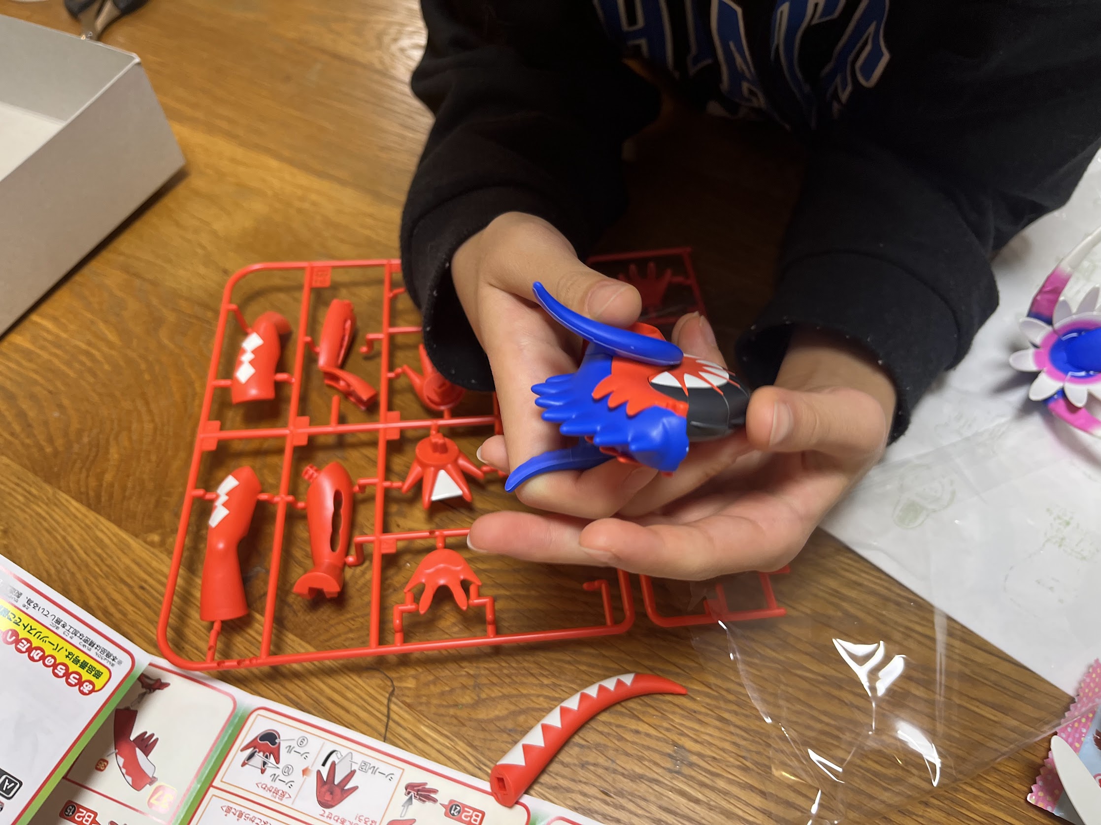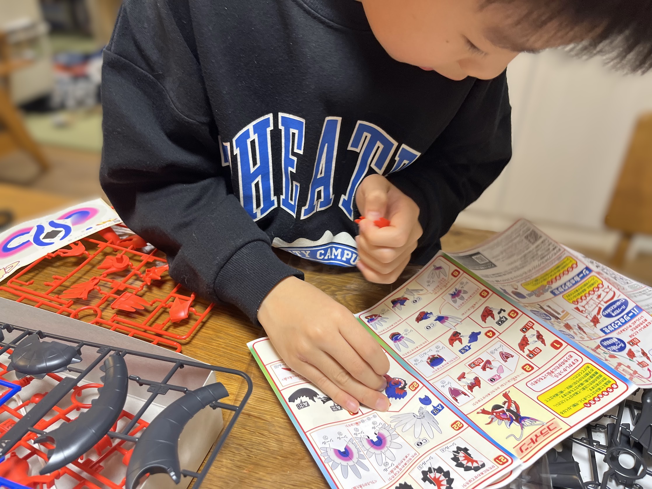 コライドンはお兄ちゃんが作りましたが、細かいシールが多かったので貼るのにはかなり苦戦していました。そこの部分だけは手伝ってあげましたが、それ以外のパーツの組立はほぼすべて自分で作りることができました。