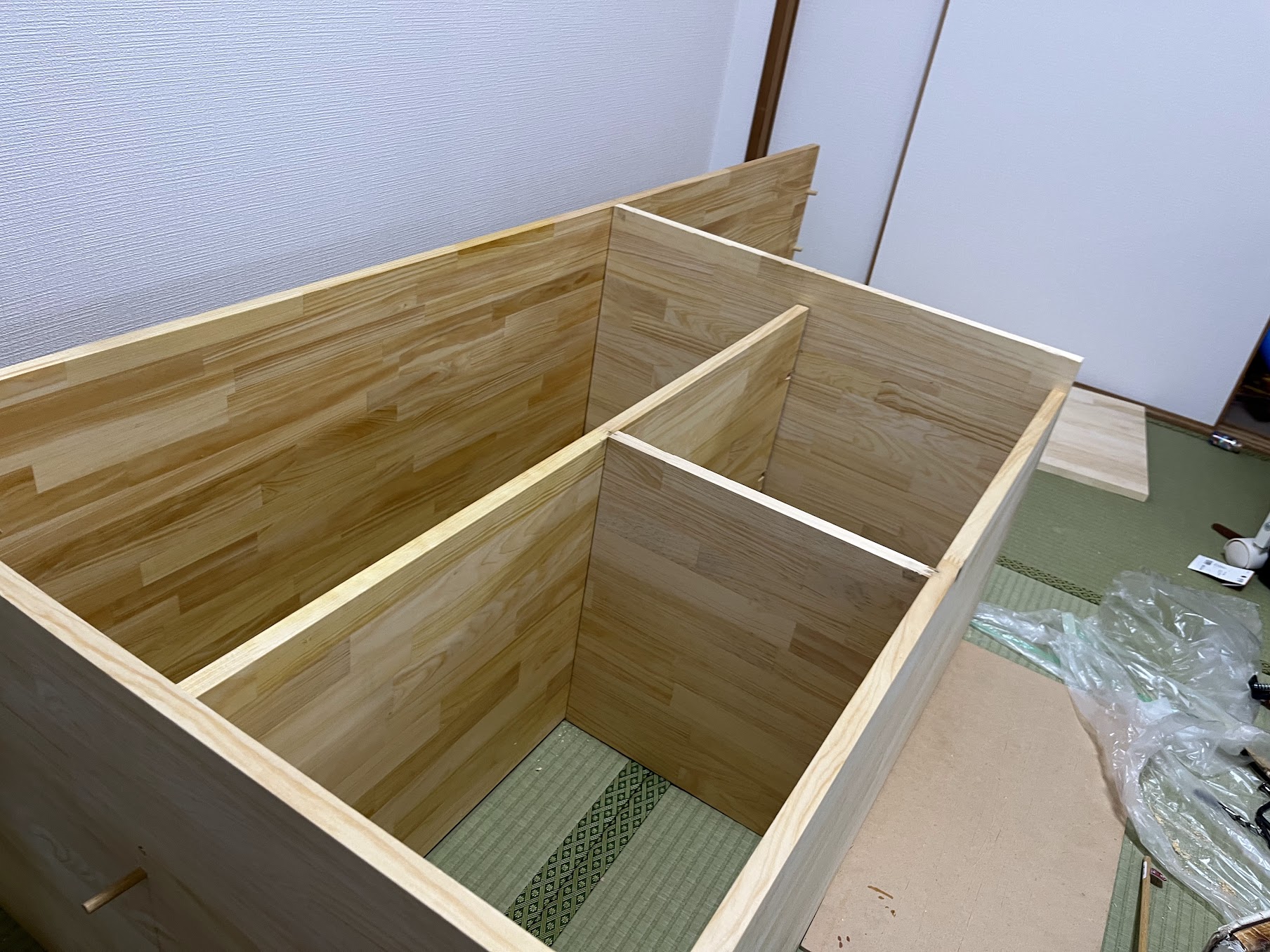 - 中央に板を入れて、2列に分割。