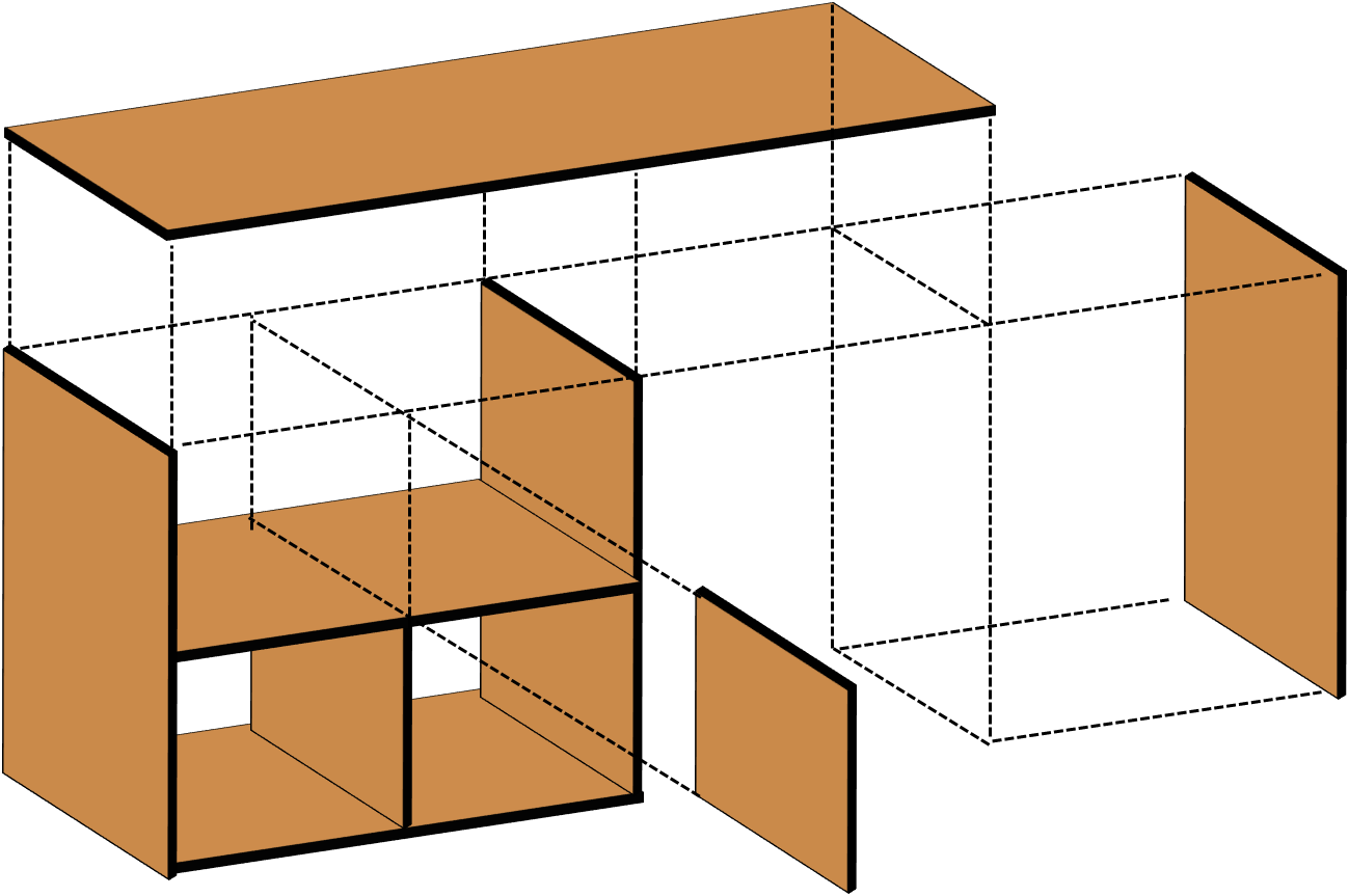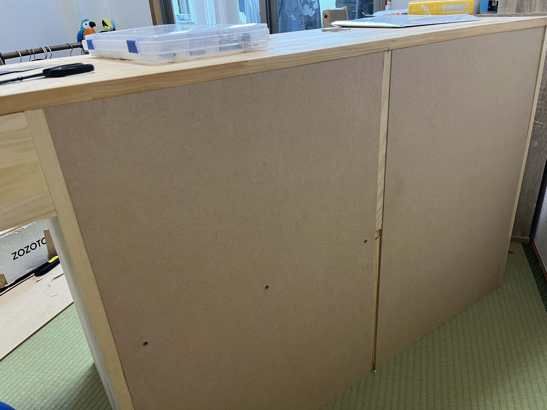 まずは、左側のおもちゃ&本棚部分を組み立てていきます。