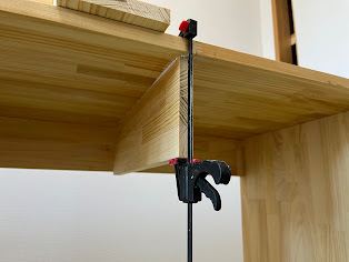 - 隙間が均等になるようにしてから、前板はダボマーカーを使ってドリルで穴を開けて正面から接続部が見えないようにしました。