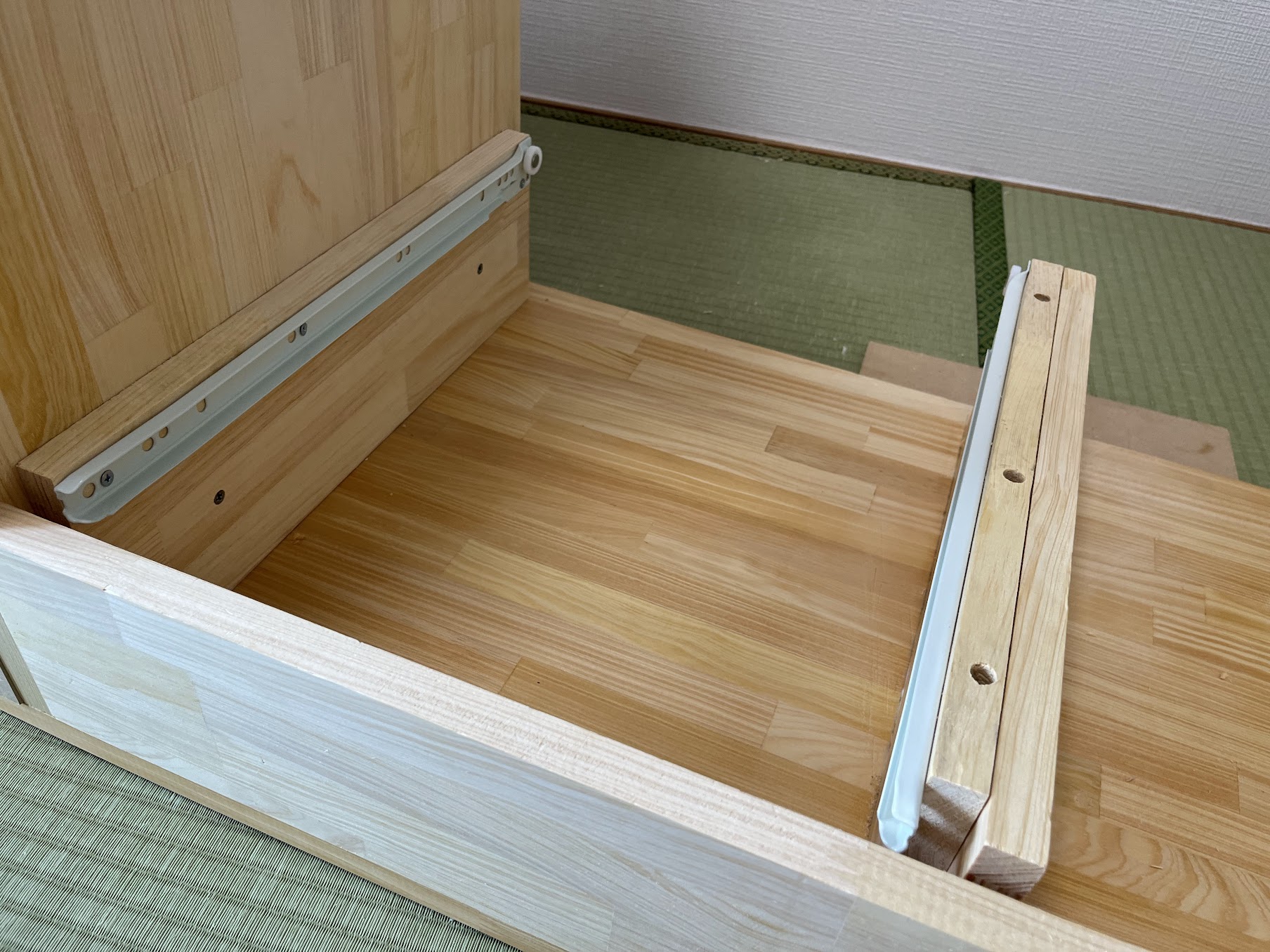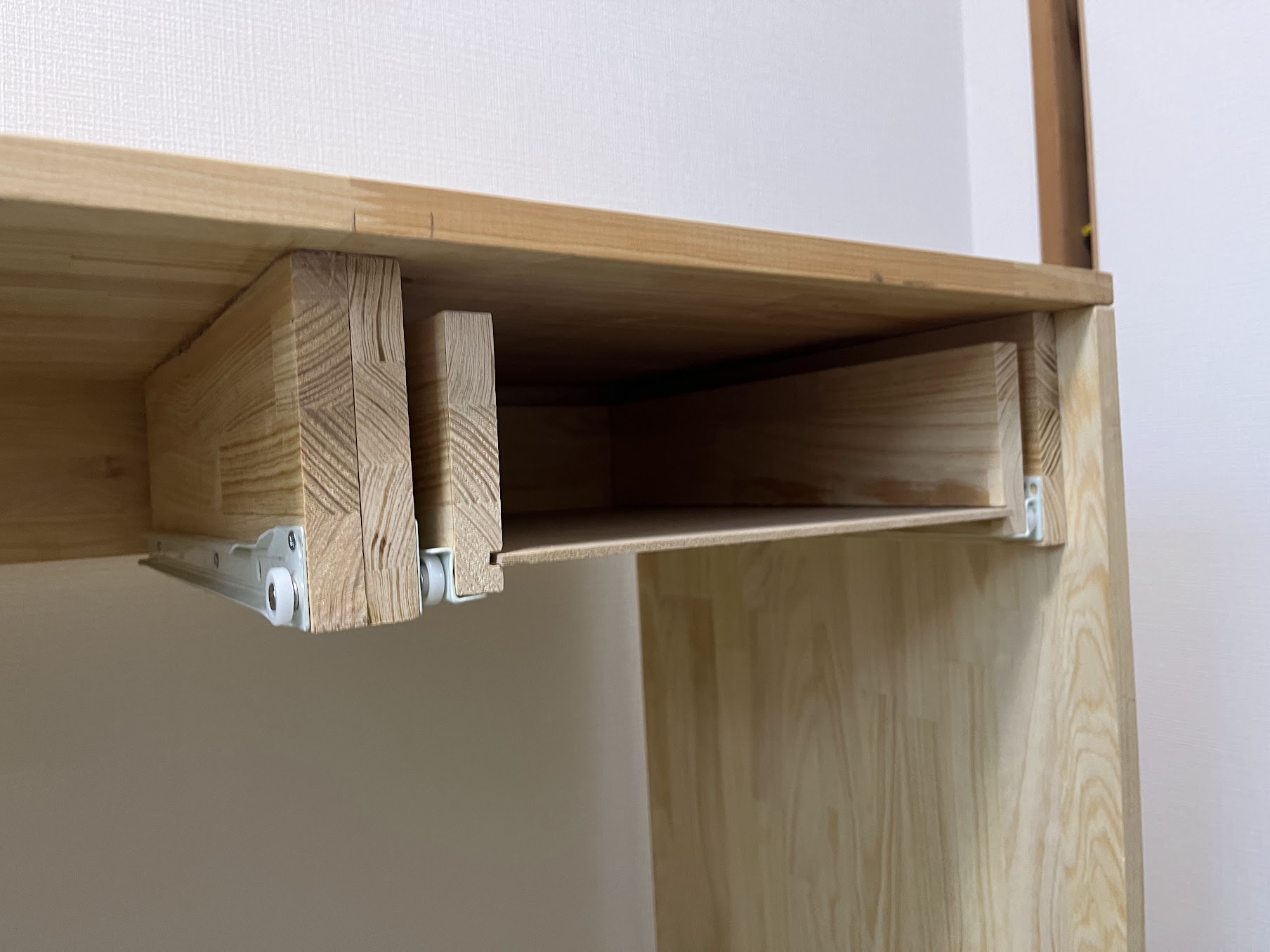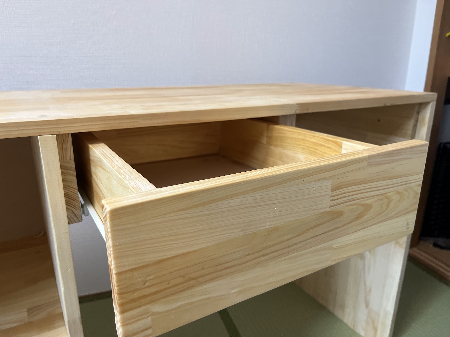 引き出しも思った以上にうまく作れました。もっとがたつくかと思っていましたが、動きもスムーズです。