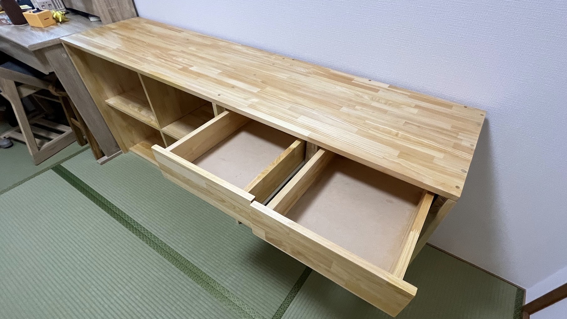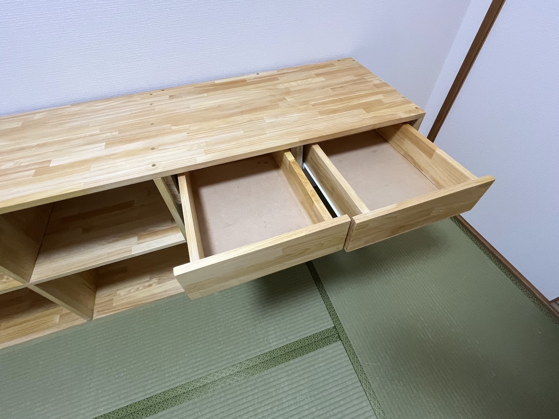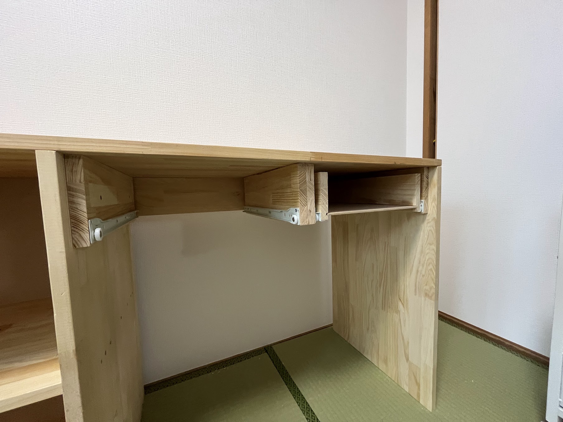 引き出しも思った以上にうまく作れました。もっとがたつくかと思っていましたが、動きもスムーズです。