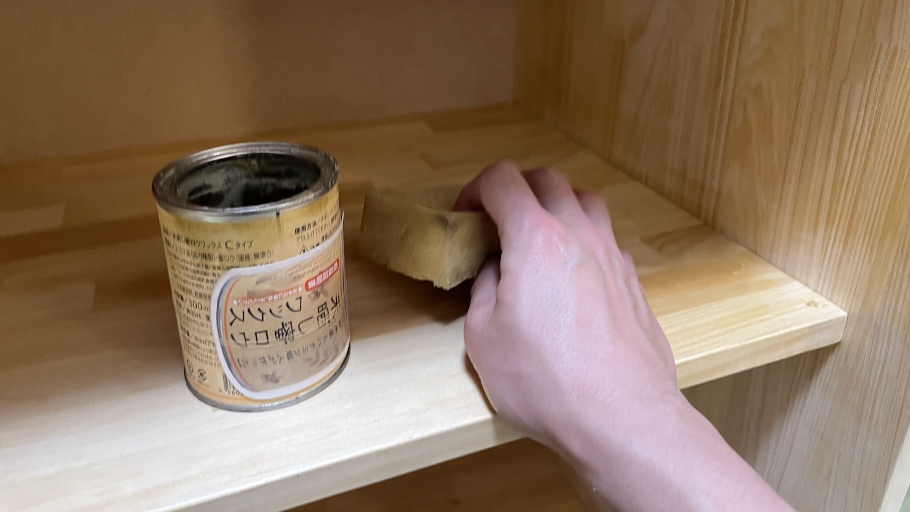 そのあと、木の色を活かしたかったので、自然素材の蜜蝋ワックスを使って仕上げます。