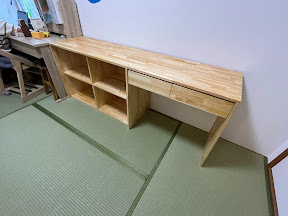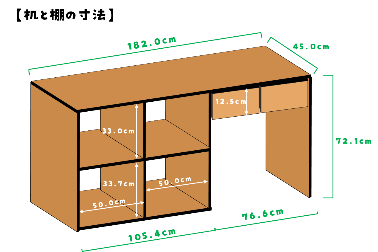 小学2年生のお兄ちゃんは、LOWYAの学習机を使っているのですが、横における棚と机をセットで作ります。
